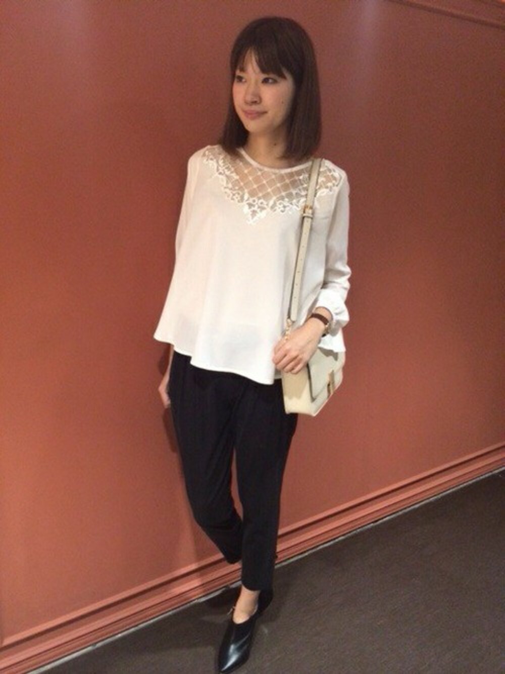 STAFF001(ABAHOUSE INTERNATIONAL Co. 本社スタッフ)のシャツ/ブラウス「ラクレ・衿ぐり刺繍プルブラウス」を使ったコーディネート