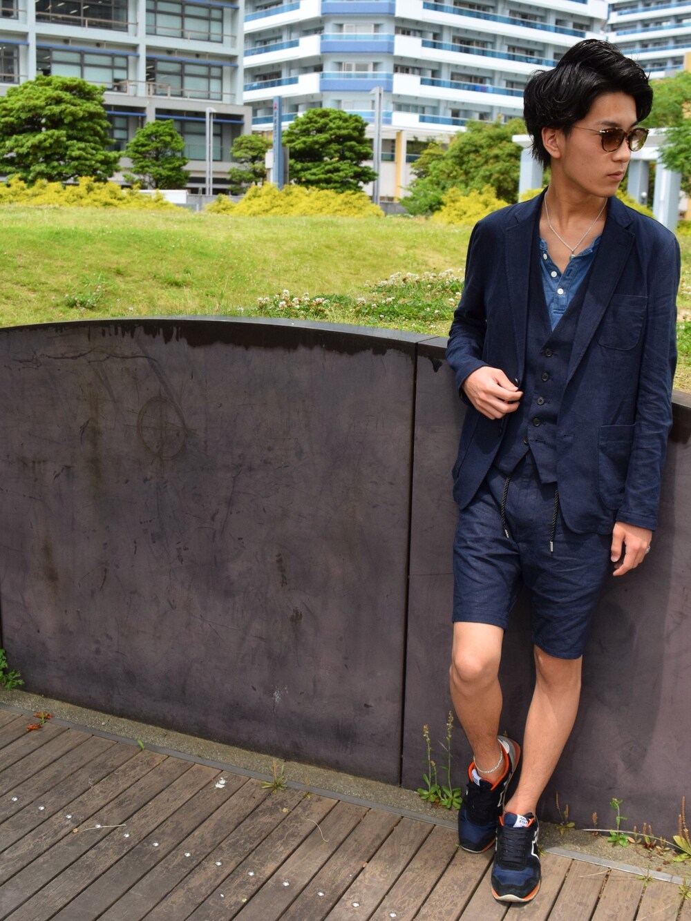 つい最近購入したナノユニバースのスリーピースを早速… ショーツのスリーピースあんま見たことなくて買ってしまった笑 金遣いが最近やばめだから頑張って我慢します…笑