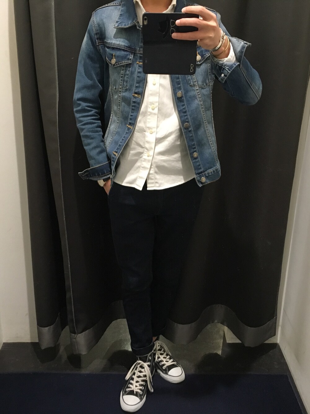 今日から地獄の12連勤…… しんどい…… GW悪魔や…… めちゃめちゃ見づらいけどパンツはインディゴのチノで履きやすいし結構気に入ってる😑