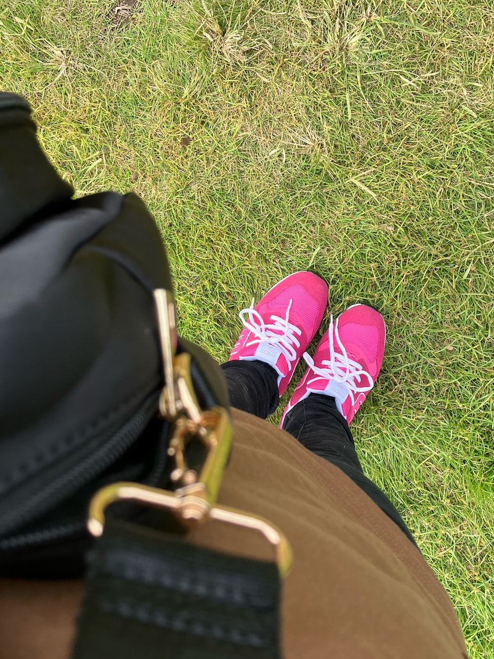 スニーカーをポイントにしたコーデ☆ ピンクとブラウン合いますね。