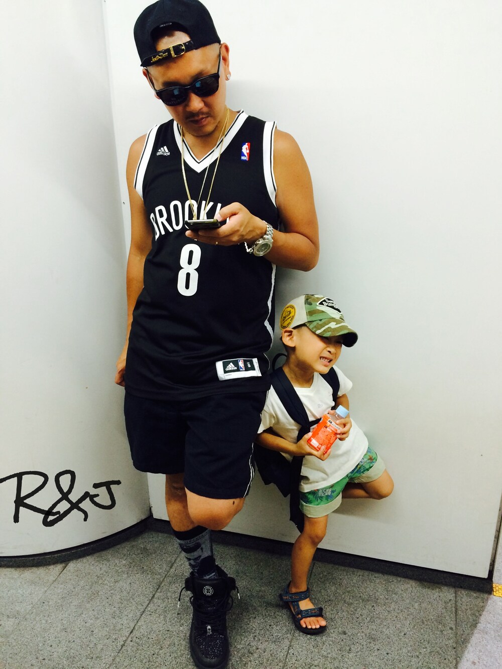 全身真っ黒クロスケコーデです😁 ちょっとこわくて近寄りたくない感じの人です😁 でも息子は大好きなパパです❤️