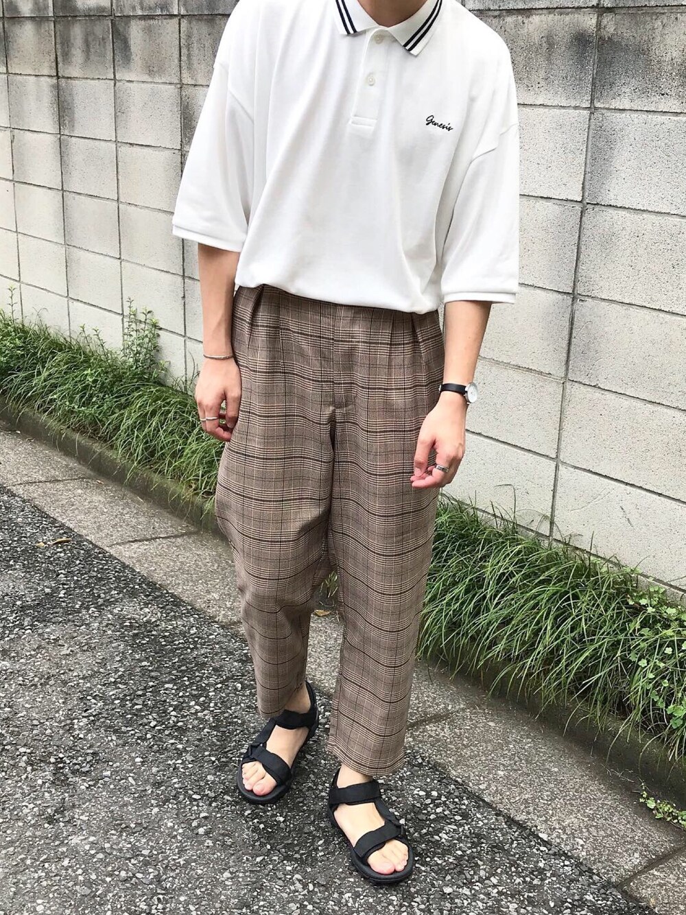kojiのポロシャツ「WEGO/カラーラインビッグシルエット5分袖ポロシャツ」を使ったコーディネート