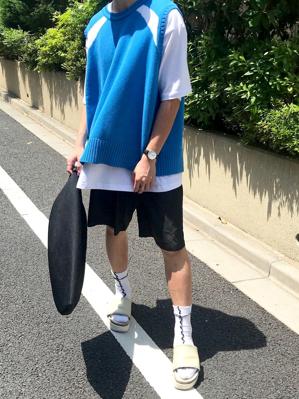 こんばんは!いつも見てくださりありがとうございます🙌🏻 ベストを使ったハーフパンツコーデ☀️ モノトーンに1つ色を入れるコーデが好きなのでこういう合わせ方をよくします◎ instagram→@kojikun0909