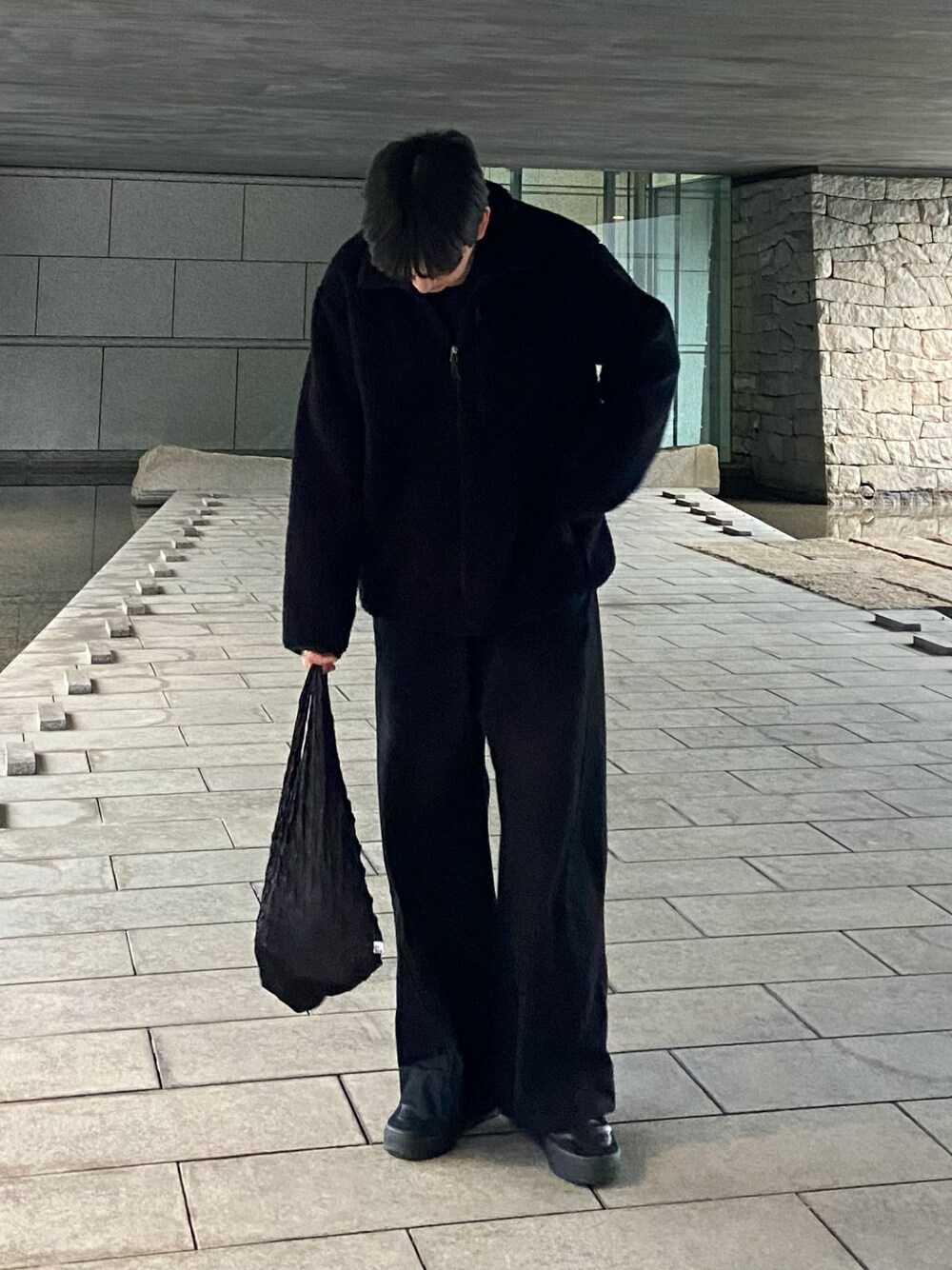 フリースで暖かいブラックコーデ instagram→@kojikun0909