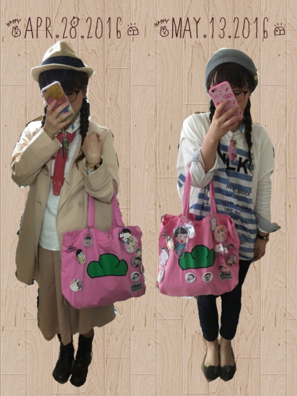 おそ松さんカフェに行ったときの服。 ポイントはトッティ痛バッグのパワーアップ度。