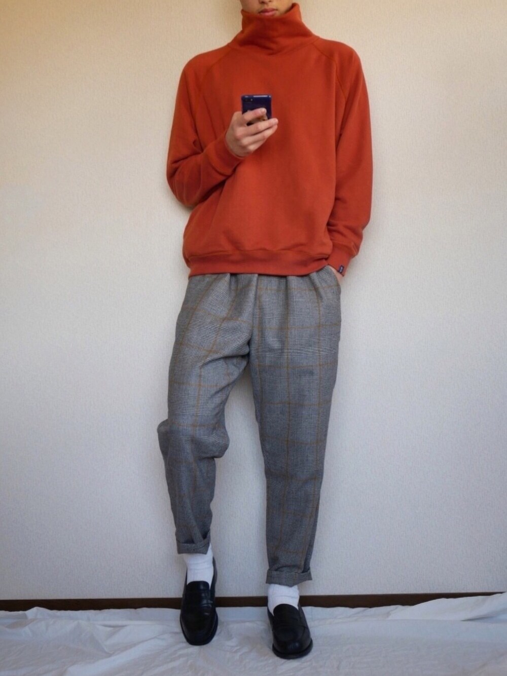 いつもご覧頂きありがとうございます! これからもバシバシお洒落な服装を投稿していくのでフォローお願いします! 👕ファッション説明👖 去年から引き続き流行しているグレンチェックのパンツをベースに考えたコーディネートです! グレンチェックにも使用している、オレンジ色をトップスにも着用することで 暗くなりがちな秋冬ファッションを明るくしています! シューズを黒いローファーを履く事で外し過ぎず大人のシックな装いに落とし込みました! 自己紹介欄に下記のリンクも貼ってるので良かったらチェックしてみて下さい💫 Twitter→fun_wear_blog Instagram→k___________ou Fashion blog→fun-wear.com