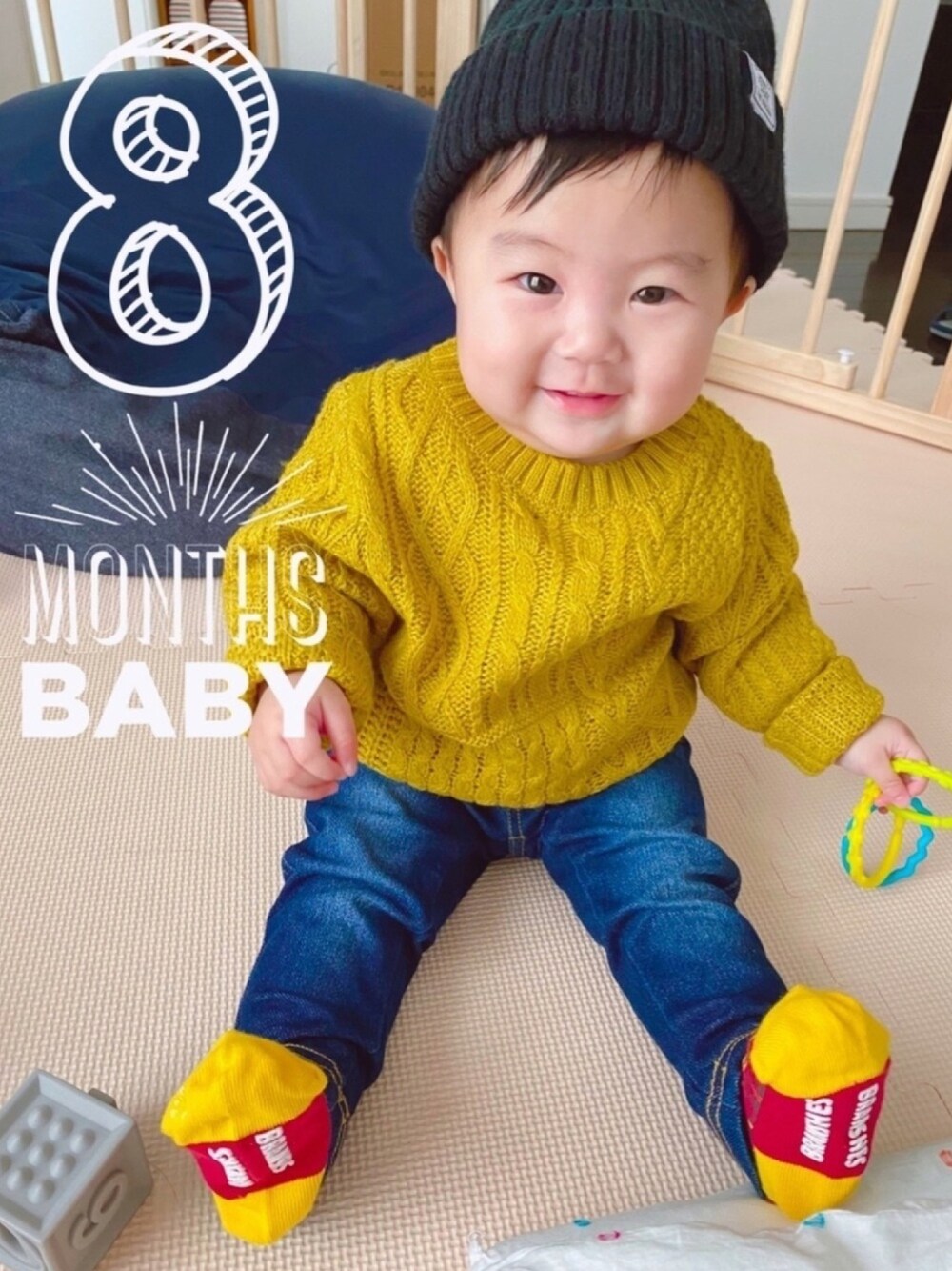 今日で8ヶ月になりました👶🏻🙌 そろそろ2回食にするか…憂鬱🤣 ハイハイが勢いよく出来るようになったので、ベビーフェンスを購入して放牧はじめました🐄 ☞記録☜ 身長 68cm 体重 8.3kg