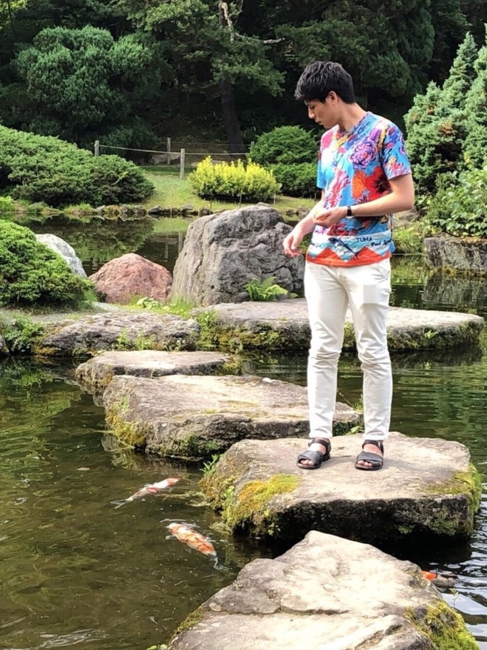 初投稿です🙆♂️ 昨年夏に撮った一枚。 shirts : KOI HAWIIAN (PaulSmith) pants :(291295=HOMME) shoes:(MARGARET HOWELL) watch:1995 (PaulSmith)