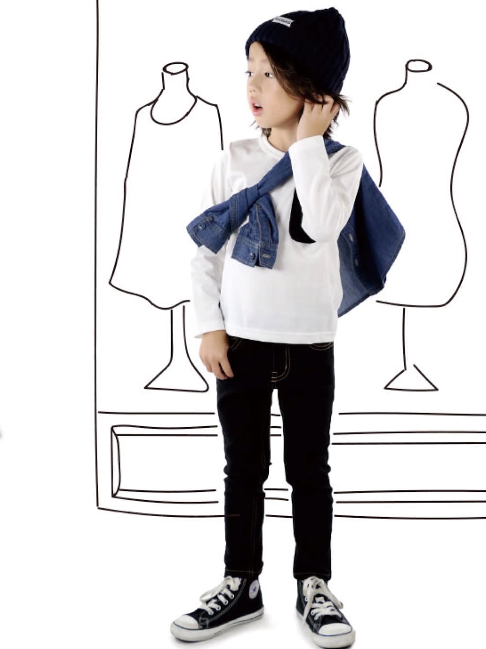 お休みの日には家族でお出掛け♪ 今日は、パパのマネをしてちょっと大人モードに変身♪ ポケットがポイントのシンプルなTシャツは、大人顔負け!! 斜めがけでコーディネートのアクセントに取り入れたデニムのシャツは もし、肌寒くなった時も羽織れて安心ですね! 伸び伸びのストレッチの効いたスキニーは、キレイなシルエットながら 動きやすさもバツグンでおススメです!