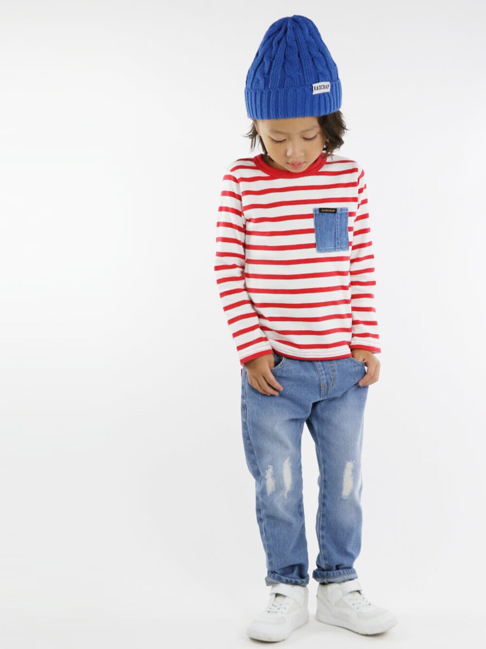 けんしん君のTシャツ/カットソー「デニムポケットボーダー長袖Tシャツ」を使ったコーディネート