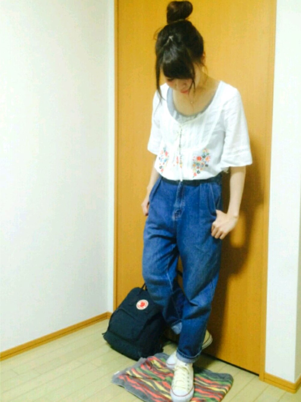 こんにちは💕 見てくださってありがとうございます。 刺繍トップス×マムジーンズ 刺繍トップスは何年も前に買ったものだけど、サイズ感と色合いが好みで未だに愛用💕🌻 気づけばのっけてるコーデの靴全て コンバースになってた😭… 他にもお気に入りの靴のっけて いきたいな♥ そして、 昨日ずーっと買いたいと思ってた 彼とのペアシューズついに一緒に 買ってもらえたのでそれも はやくはきたい!💕わくわく