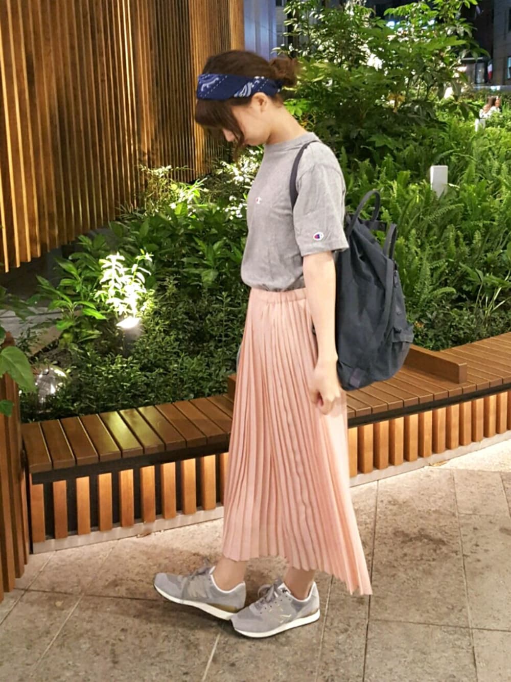 こんばんは🌙✨ ピンク×グレー ピンクのマキシにチャンピオンTで カジュアルダウン♪🌻! 今日はネイルも新しくして お買い物して女の子充した日🙈💕 最近はバンダナ柄に目がいきます~☺