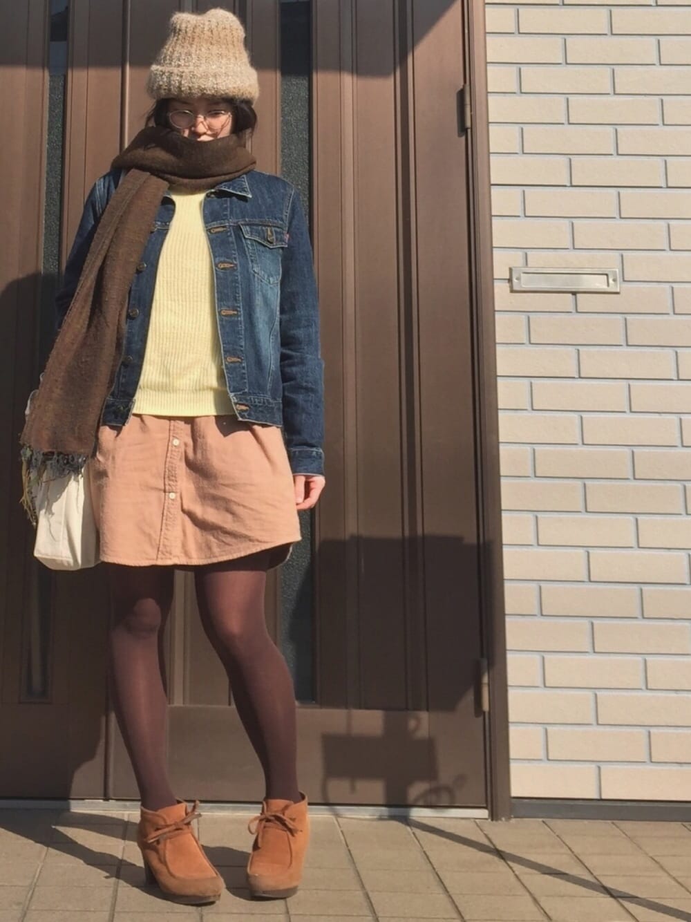 ご覧頂きandいいねsaveコメントフォローしてくださる方々ありがとうございますᗦ↞◃🙏 去年撮ってあげてなかった写真を発掘したので年またいじゃったけどあげてみる(笑) 11月か12月の比較的暖かった時のコーデ🐤 なんかブラウン系多めw 本当のテーマとしては明るめのレモンイエローニットをこの時期にどう着こなすか...だったんだけど気が付いたらブラウンメインなコーデになっていたという(笑) そして狙った訳ではないけどもシャツワンピが台形スカートっぽく見えるという奇跡...でもないか((´;Θ∀Θ) なんか北のほうでは寒波が襲来してるらしいですが本当最近寒くて布団からでるのが難しいです(:3[_____] 明日明後日辺り-1になるとか...勘弁してくれ..._:(´ `」 ∠):_ 今このコーデ着るならジージャンではなく代わりに1枚何か羽織ってからのコートですね完全に。防寒大事╭( ・ㅂ・)و ̑̑ 今日は乗ろうとした電車が運休になり更に次の電車も遅れているという最悪なパターンに陥ったので明日はいい事ありますように...(笑)