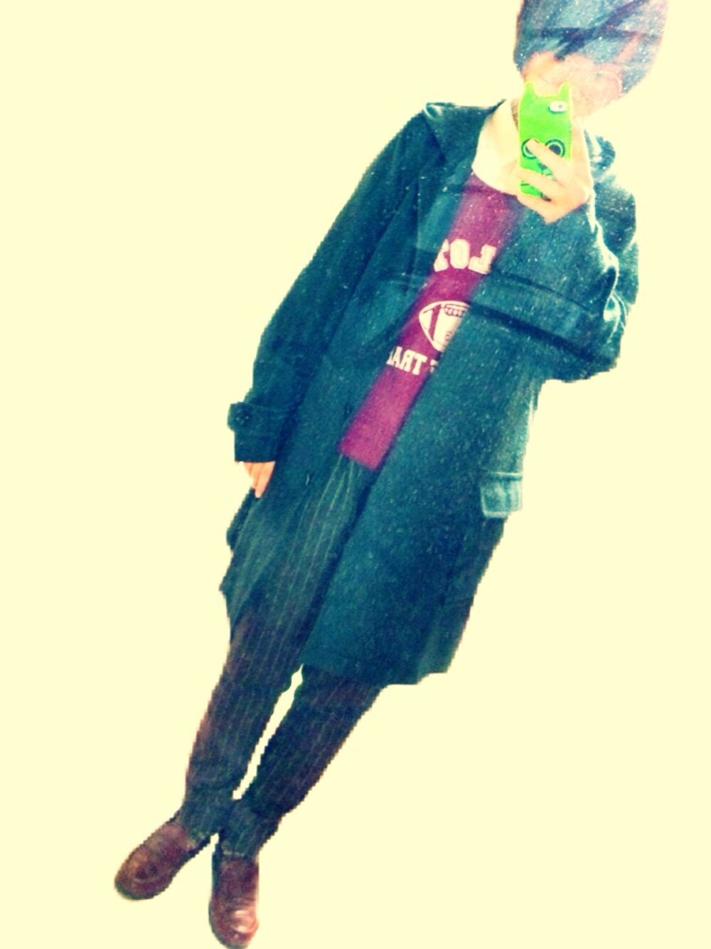 白シャツにusedのトレーナー。 キラキラの靴下はお気に入り。