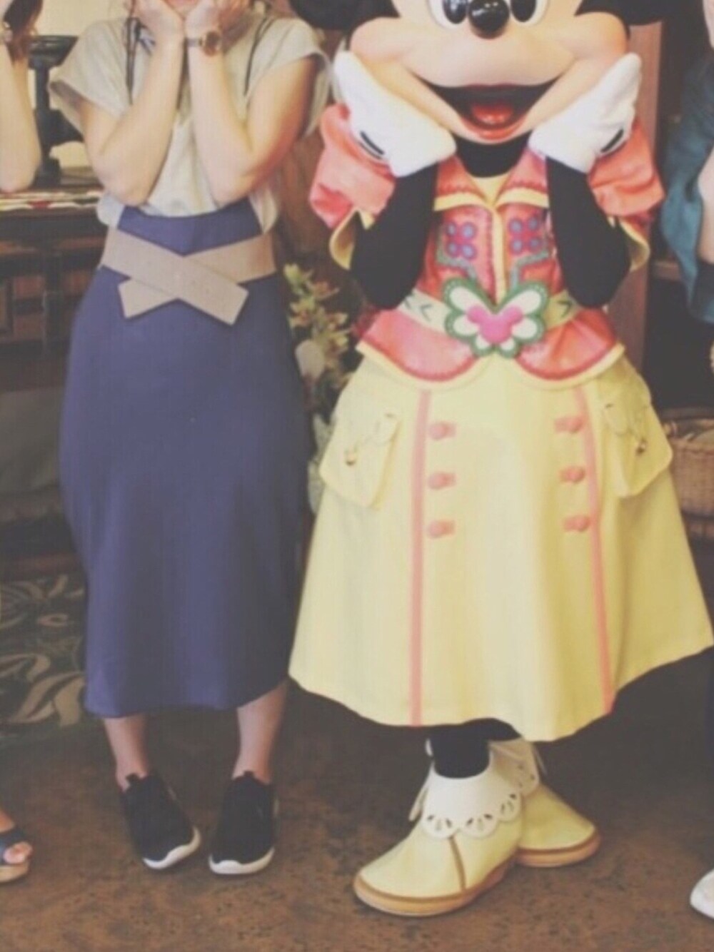 お友達のお誕生日お祝いのためにディズニーに行きました〜🐭 ミニーの足の女子力見習いたい👠 このサッシュベルトが可愛すぎてたまらない