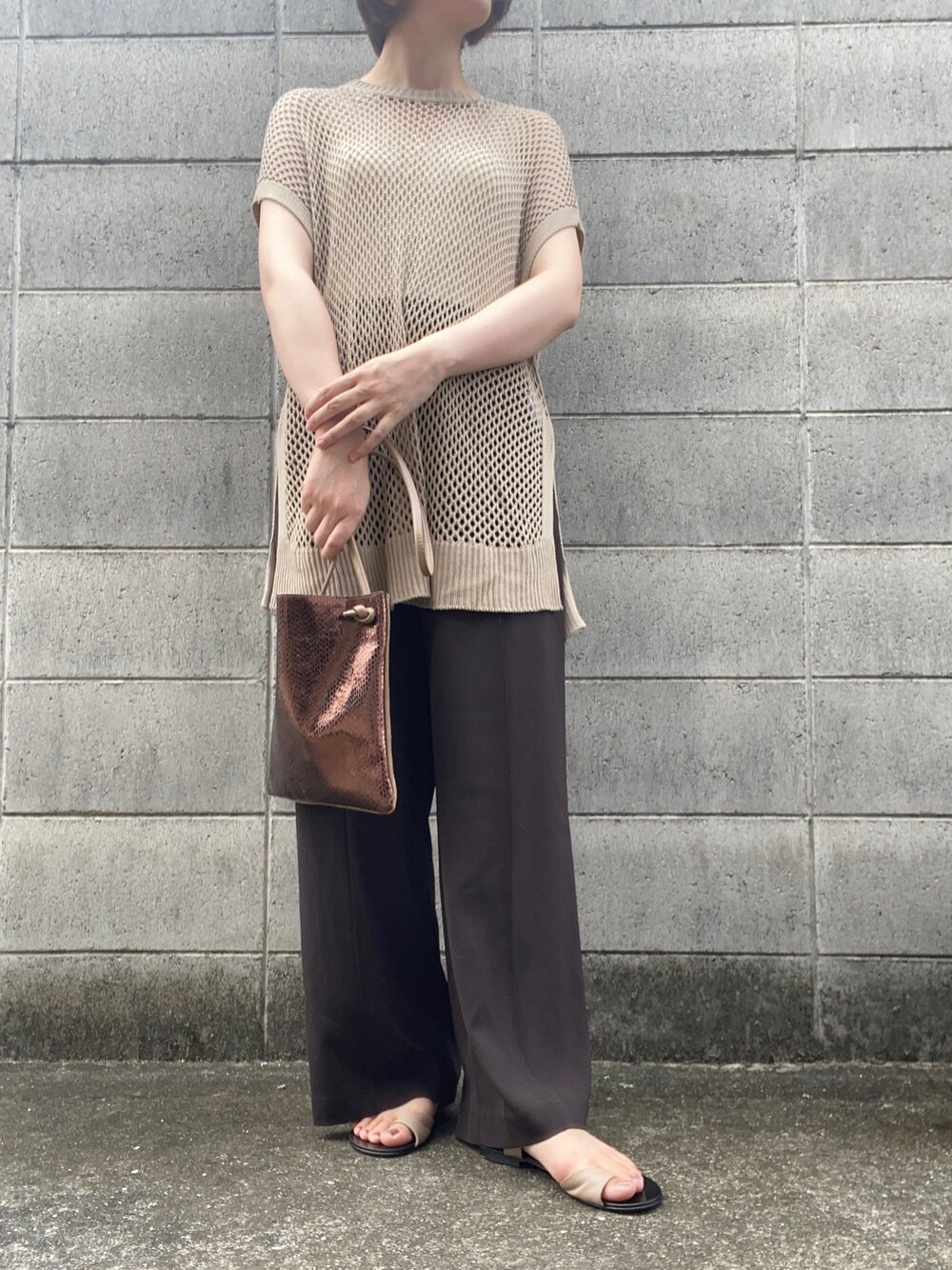 フィッシュネットベストを主役に,ブラウンベージュ系でまとめました。