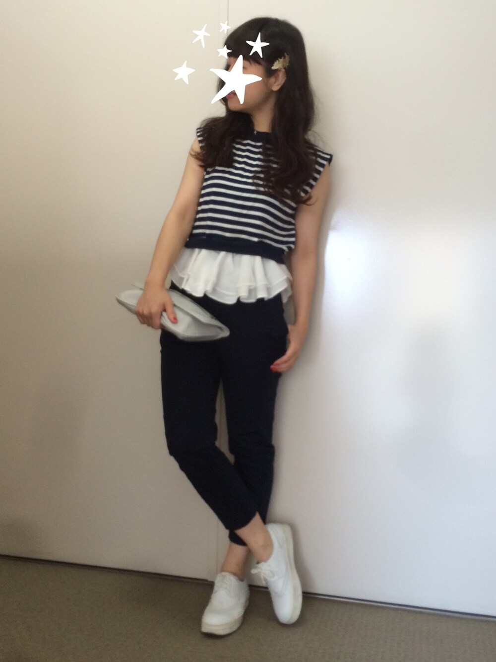 ネイビー×白コーデ♡ FRAY I.Dのニットトップスは去年の物で、ZOZOUSEDで安く買いました。 ペプラム部分が取り外しできて優秀! ZOZOさんありがとう♡