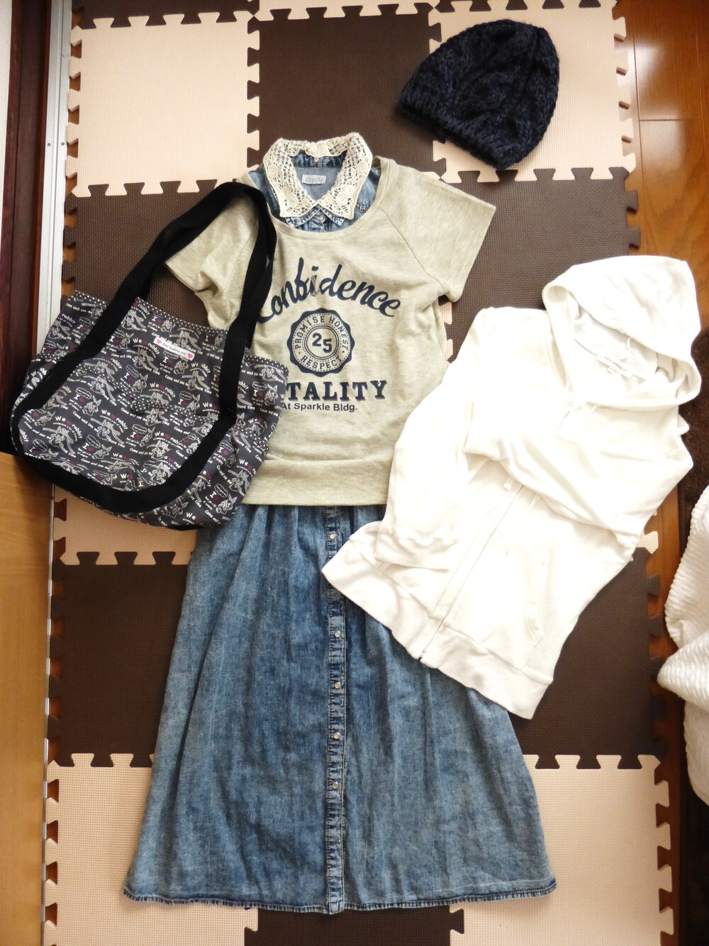 ピクニックに行きたくなる♪ Tシャツ着ないで白のパーカーをはおると、ガーリーになるよ☆