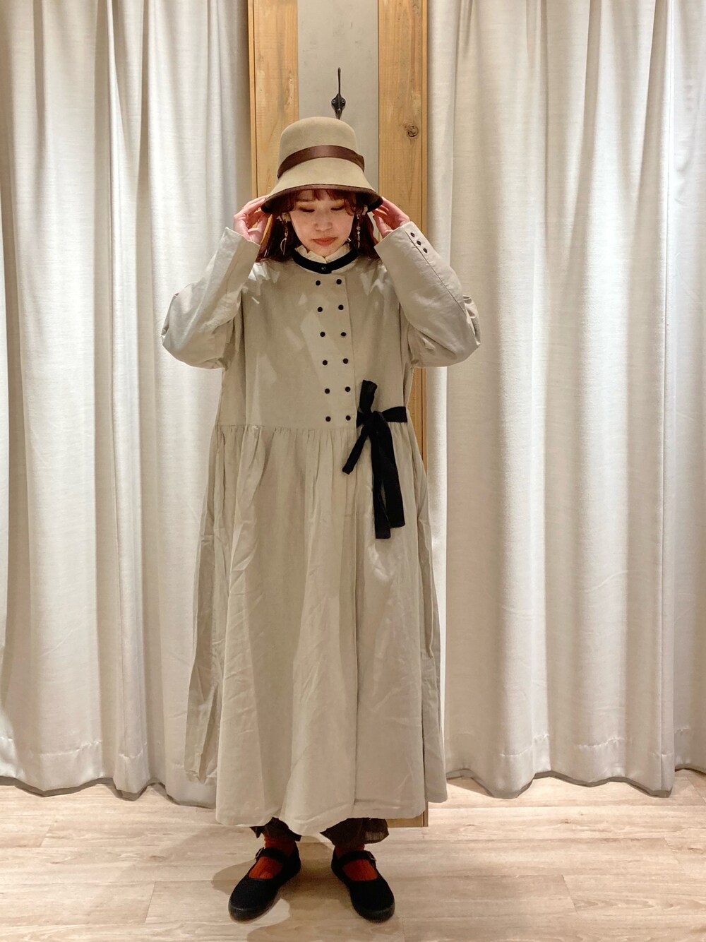リボンがポイントのコートです ゆったりしたシルエットで厚手のニットも着れそうです!