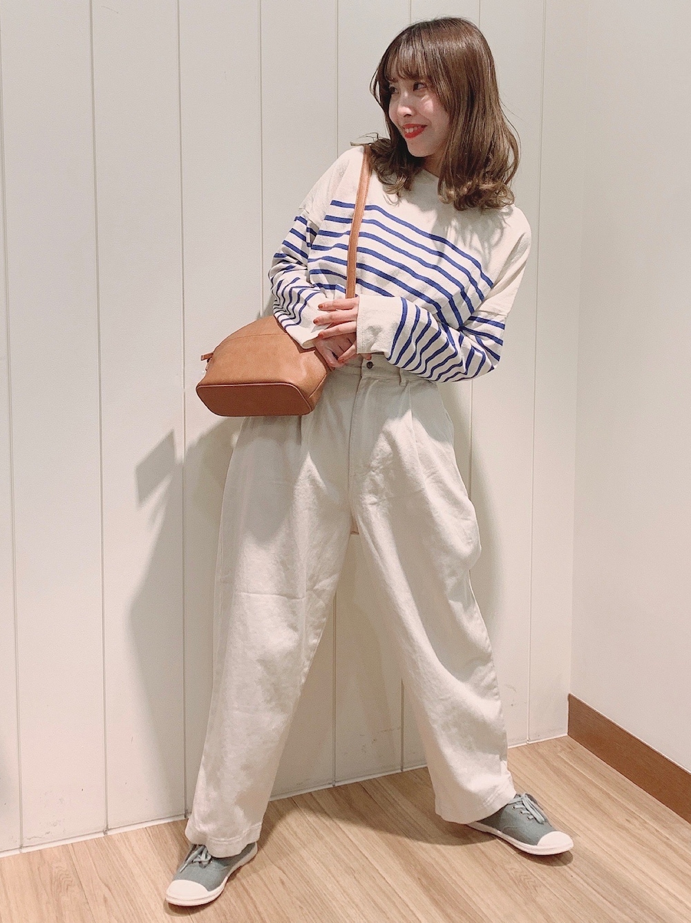 こんばんは🌝 青のボーダーを爽やかに白のパンツで 合わせてみました🌎✨ 全体的に淡いお色で合わせて頂くと、 ボーダーが主役になります👌🏻🦩!