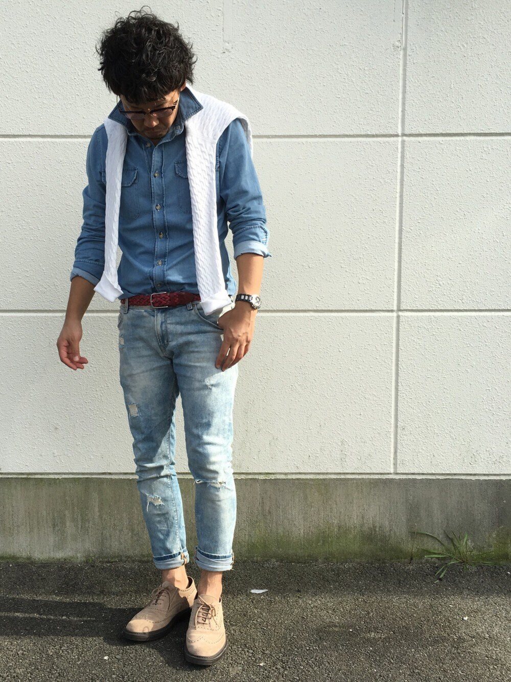 困った時のコンビニのウラ🏪 今日はデニデニ第2弾(薄version) 白ニット肩掛けはなんかの海外スナップで見たな〜て 思い出して(*´∀`)♪✨ パクリやわ😉👍