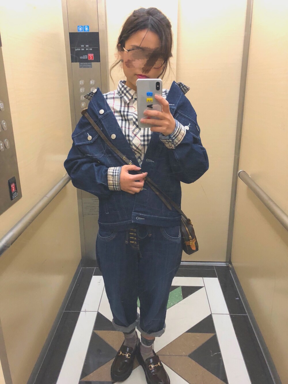 𓃝.デニムオンデニムで、古着コーデ。 𓃝.流行りの抜き襟に。