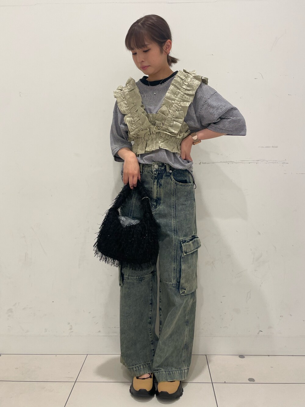 ki(SENSE OF PLACE イオンモール岡山)のデニムパンツ「ヴィンテージデニムワイドパンツ」を使ったコーディネート