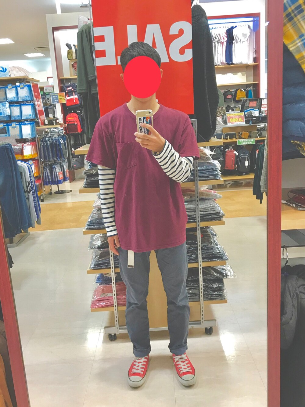 ボーダーコーデ! 白黒とエンジがいい組み合わせですね... こういうゆるいの大好きですね