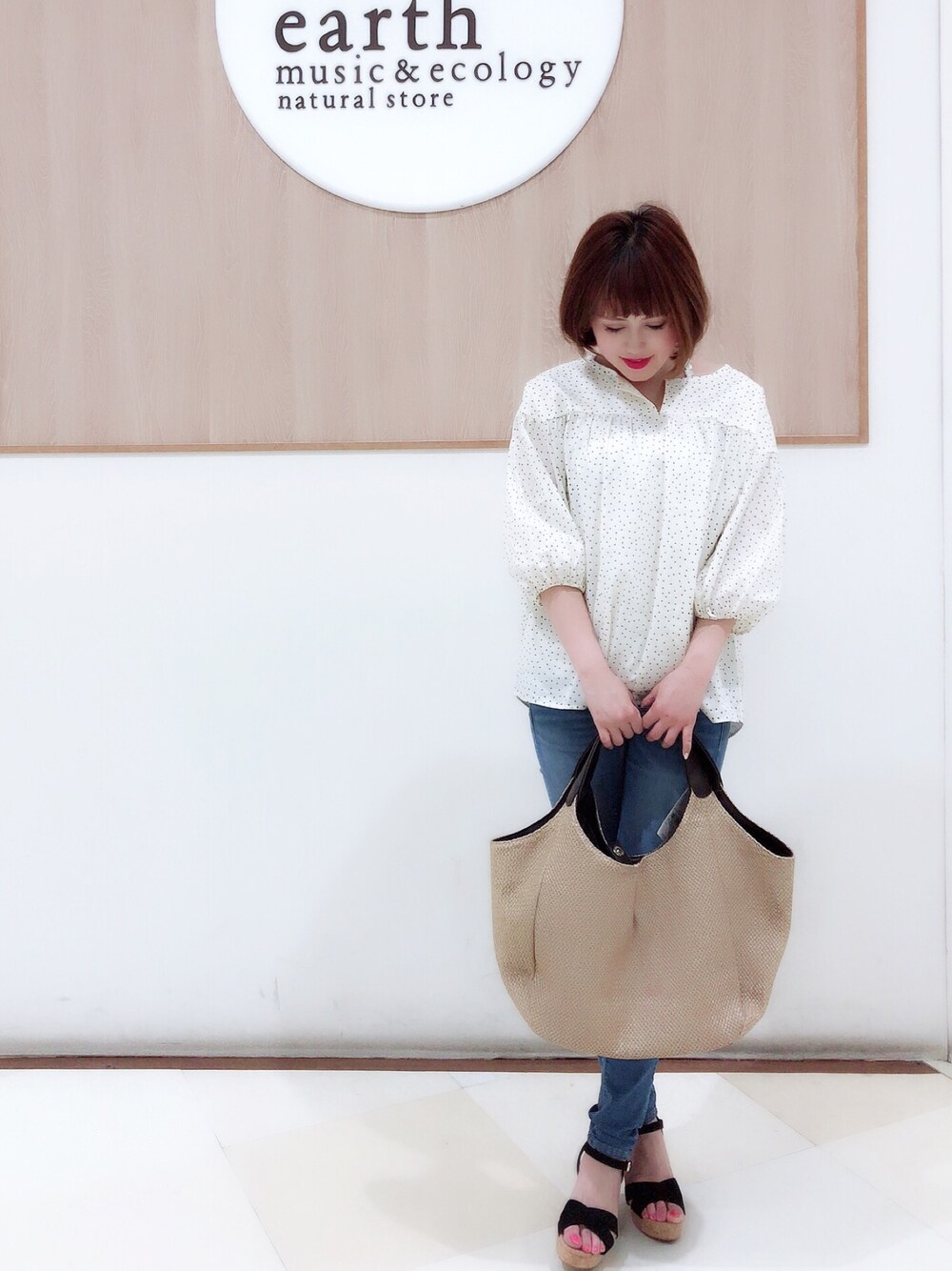 トレンドのドット柄にパンツスタイルです!大きなトートバッグも注目です♡ たっぷり入るのでお出かけにピッタリです^_^