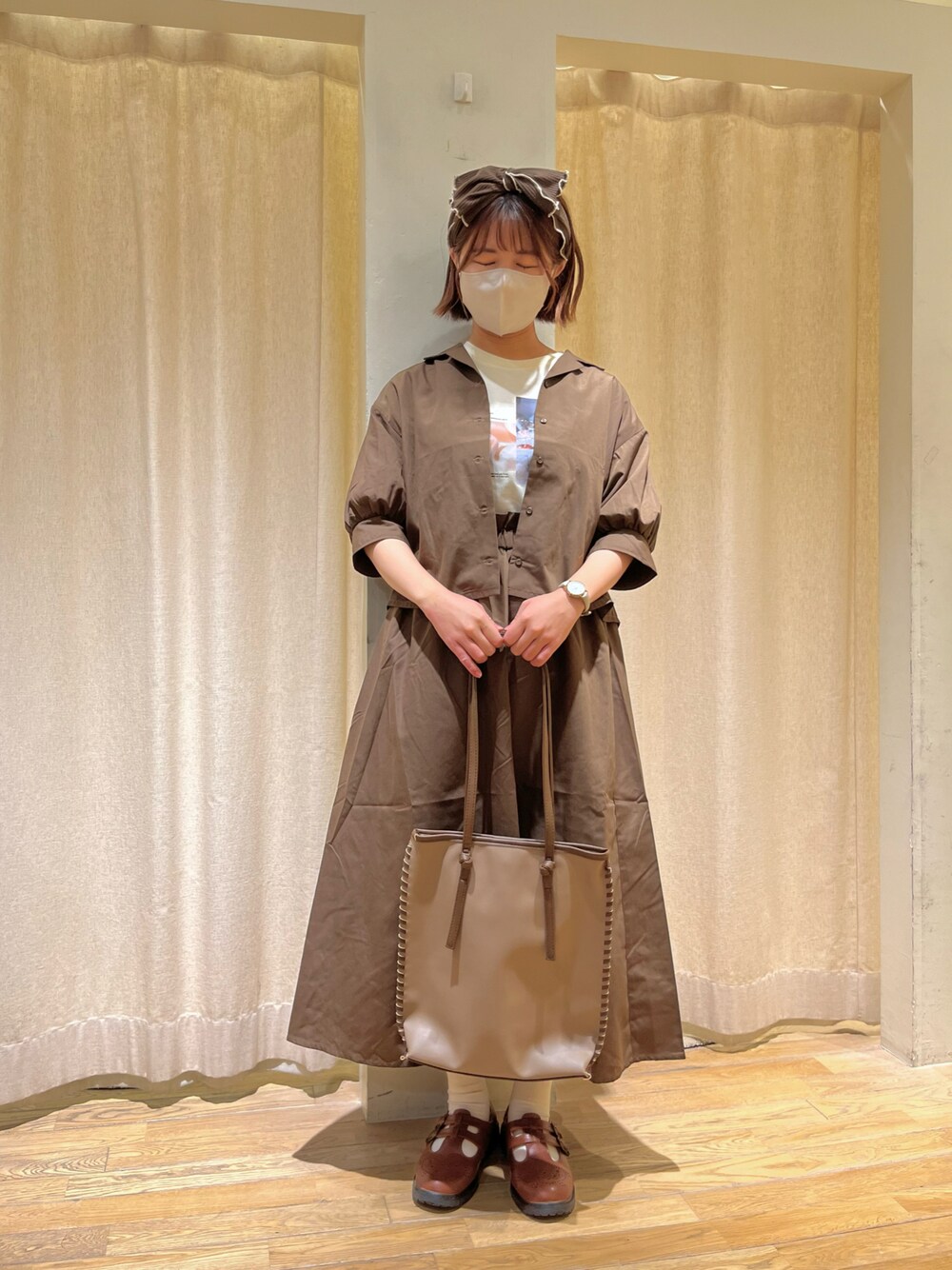 きしもとのヘアバンド「配色メロ-リブターバン」を使ったコーディネート