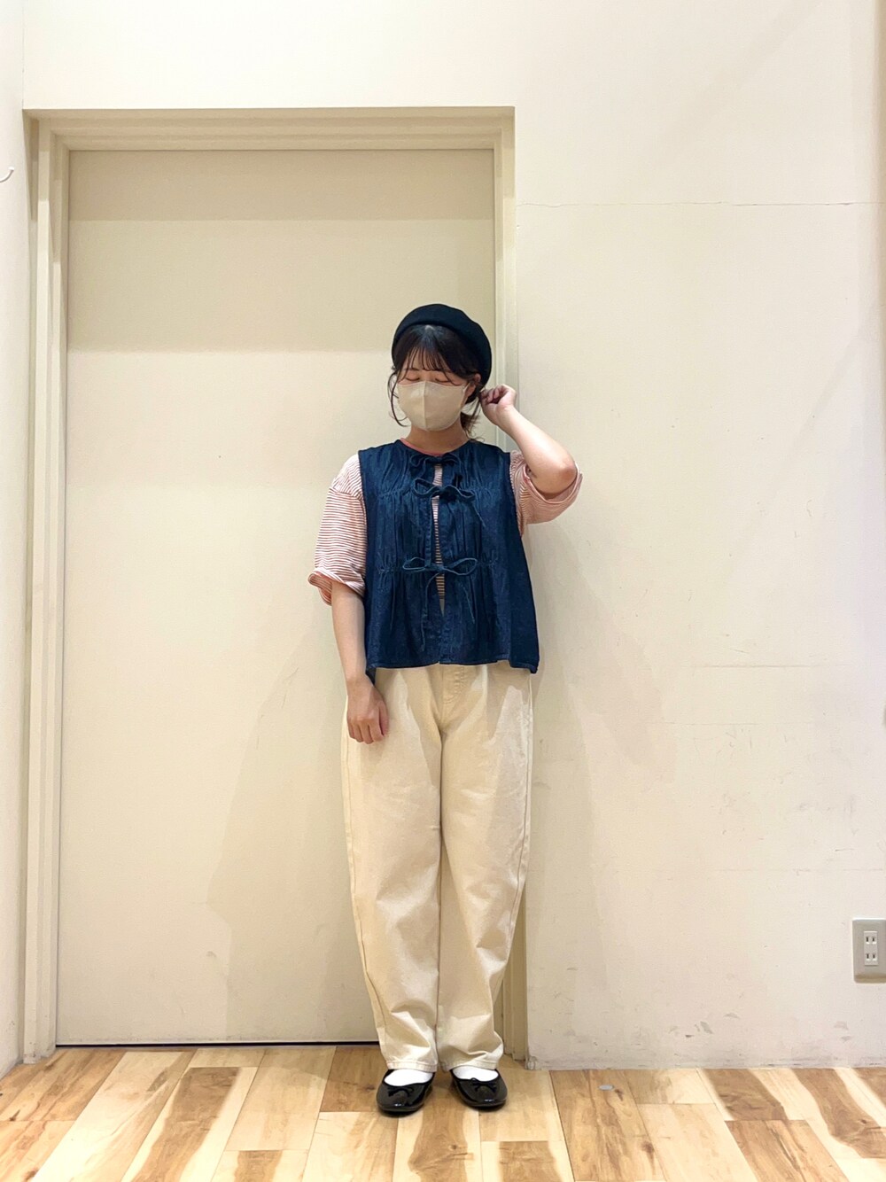 ご覧いただきありがとうございます🕊 以前投稿したピンクのボーダーTを 今回はパンツスタイルで合わせてみました🌷 ネイビーのベストと小物を黒にまとめたので 明るさは残しつつ甘くなり過ぎずに 纏めたコーディネートです🐼