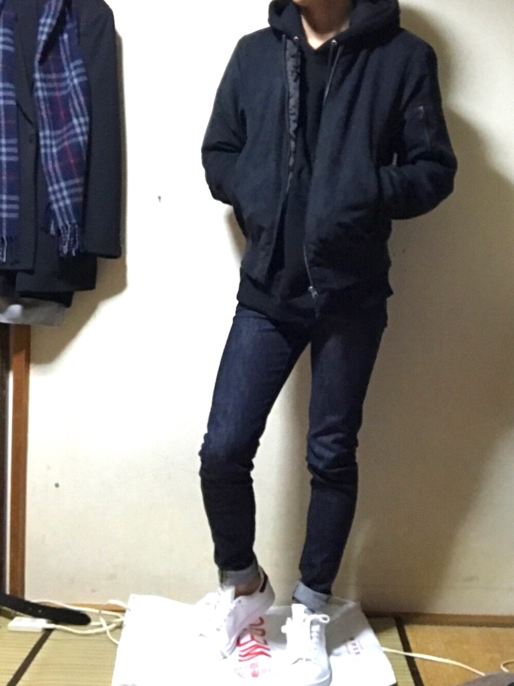 本日2回目の投稿です!笑 全体的に暗めのコーデですが、足元は白のスニーカーにしました!そして、ロールアップ!!! 靴の中でスタンスミスはお気に入りです!! ma-1じゃなくて、ライダースジャケットも合うなって思いながらコーデしました笑 カジュアル感が強めのコーデでした〜〜 宜しければ、フォローもよろしくお願いします😅