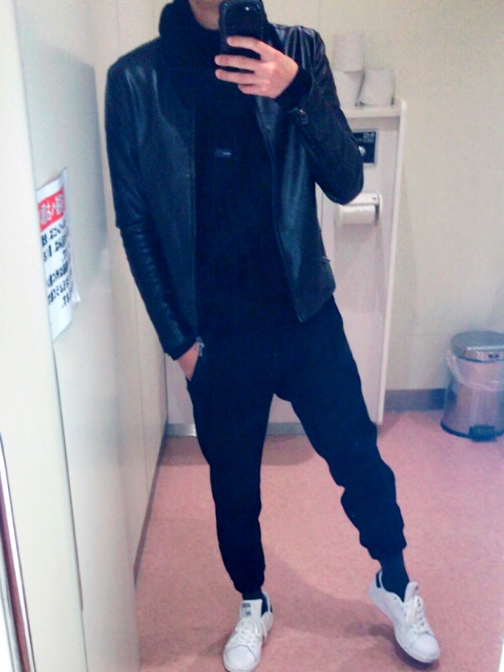 今日のコーデはモノトーンです!! 全身真っ黒だけど、印象強く靴の白さでいい感じです笑 アウター M トップス L パンツM シューズ 26