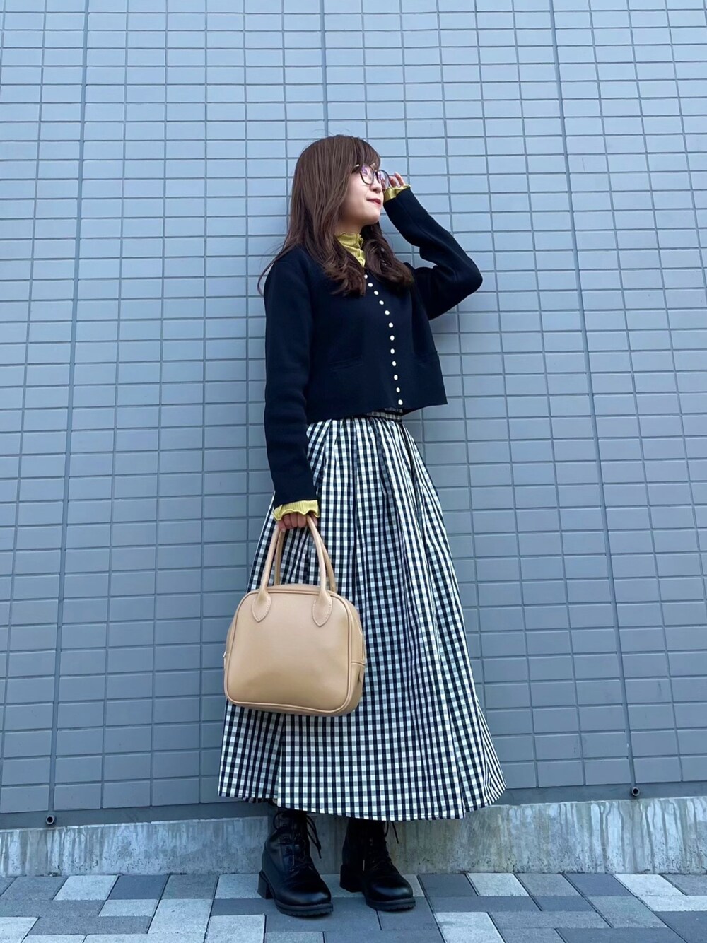 *メガネコーデ* コンパクトなサイズ感のカーディガンの下に ライトグリーンのハイネックカットソーを着ています♪♪" ギンガムチェックのフレアスカートで 春らしく華やかにしました❁¨̮ GUのスカートはXSサイズで私の身長で足首が見える ちょうど良いサイズ感です◎ 2枚目にマウンテンパーカーを羽織った写真を載せてるので 見ていただけると嬉しいです𓈒◌ いつもいいね、お気に入り、フォローまで 本当にありがとうございます(; ;)