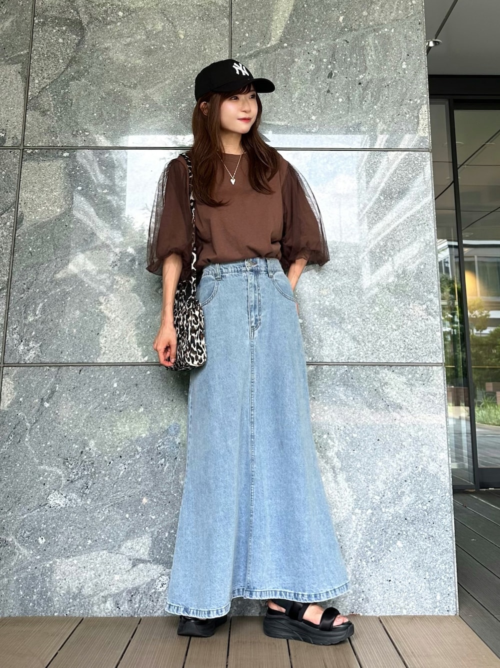 MarielのTシャツ/カットソー「チュールスリーブTシャツ」を使ったコーディネート
