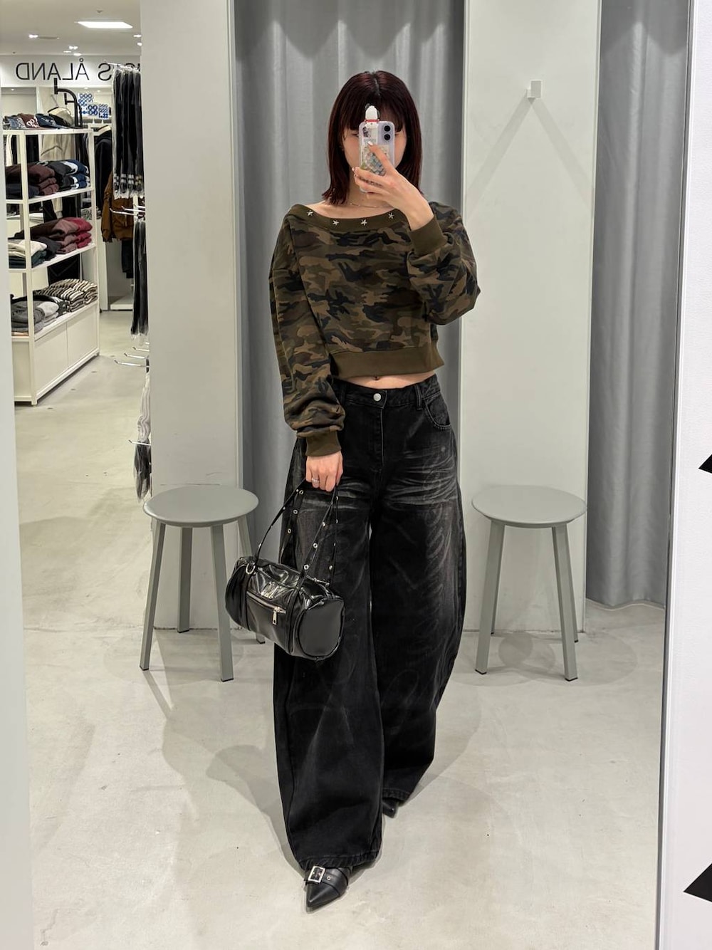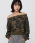 迷彩柄のオフショルトップス💚 星型のスタッズもポイントです!