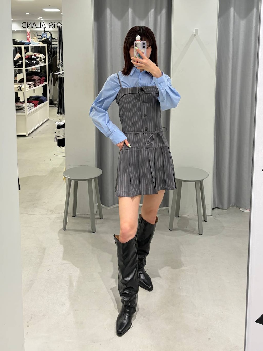 ワンピースのリボンは腰に巻く以外にもチョーカーのように使うこともできます🫶🏻 シャツレイヤードや、カーディガンを羽織るのもおすすめです!