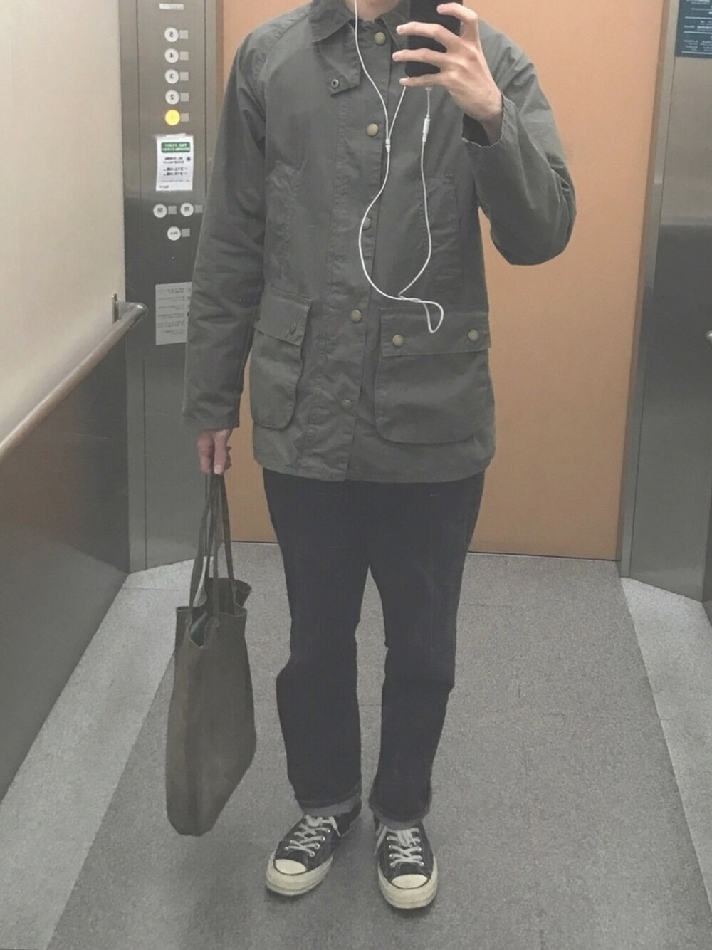 ポイント ①風情あるトート ②無印良品に居そうな装い ③エレベーターでの生産性