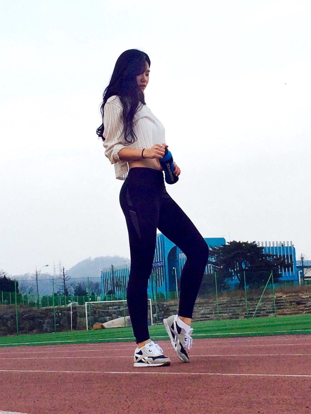 ホワイト系のスニーカー、ブラック系のレギンス/スパッツを着用したレディースの冬コーディネートの1枚目の写真