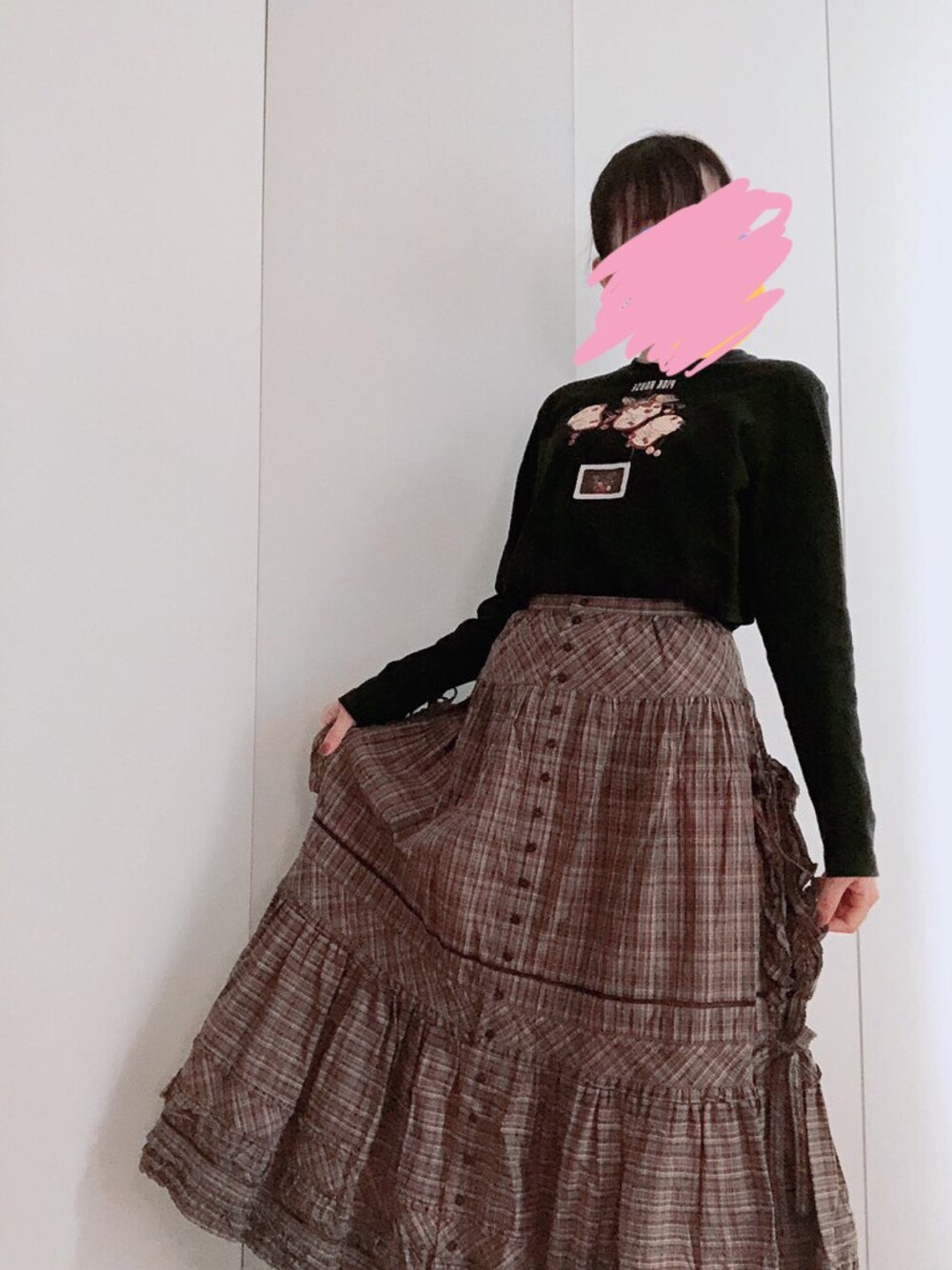 ジャム柄T×綿スカート トップスは実はロンT スカートは20年くらい前のものだけどタグ付きっぱなしの実質新品 母のおさがりコーデ