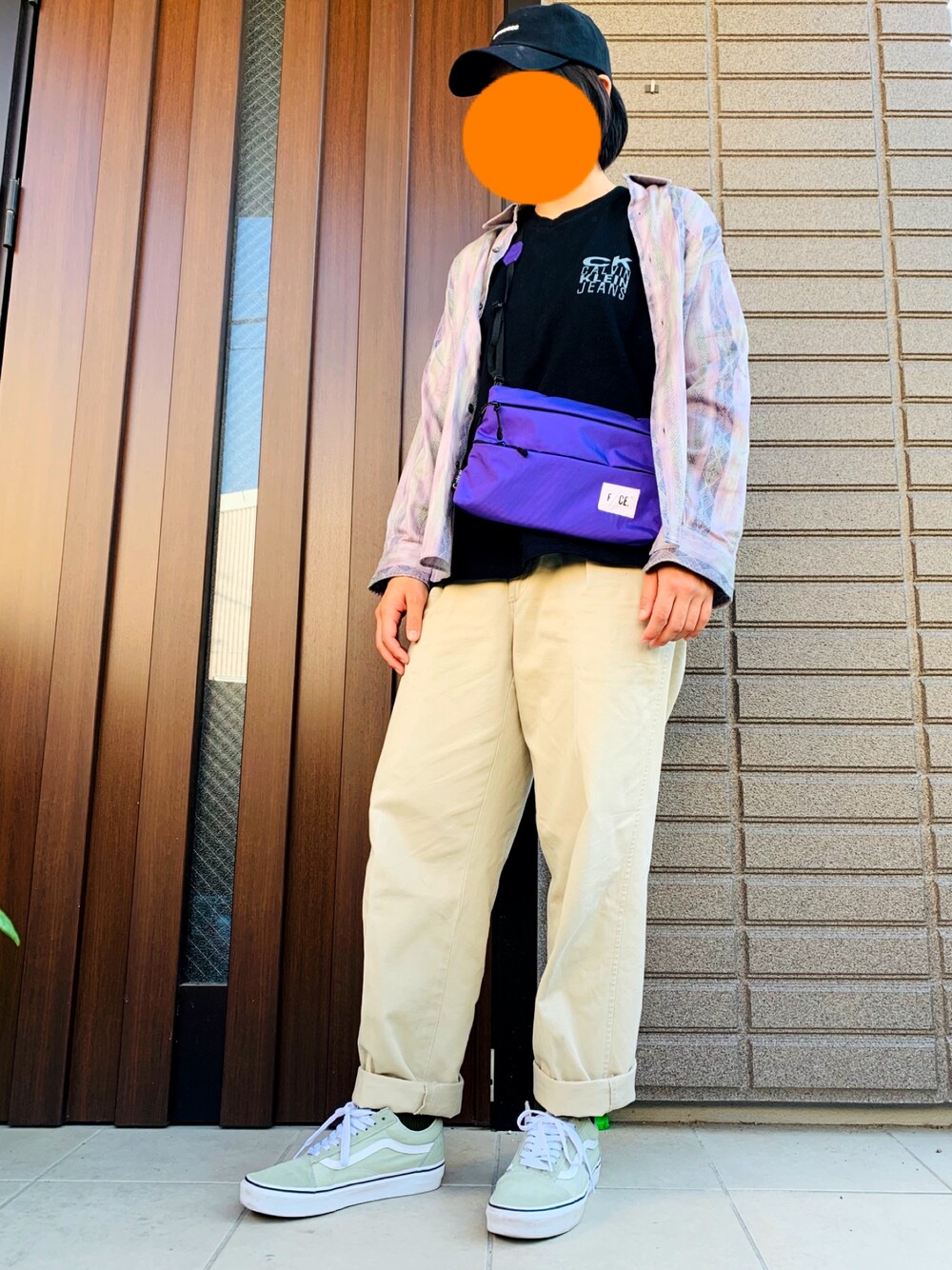 2019.5.25 お気に入りの古着でコーデです。 CALVIN KLEIN JEANSのT-shirtは 丈が短いのでインしないで、差し色にパープルを入れました。