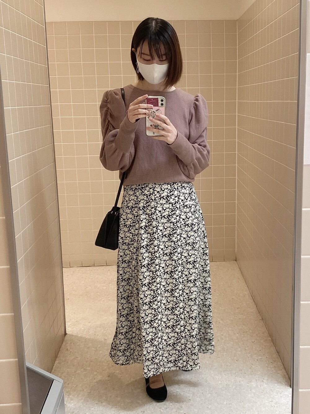 カナブーンのスカート「単色花柄フレアスカート」を使ったコーディネート