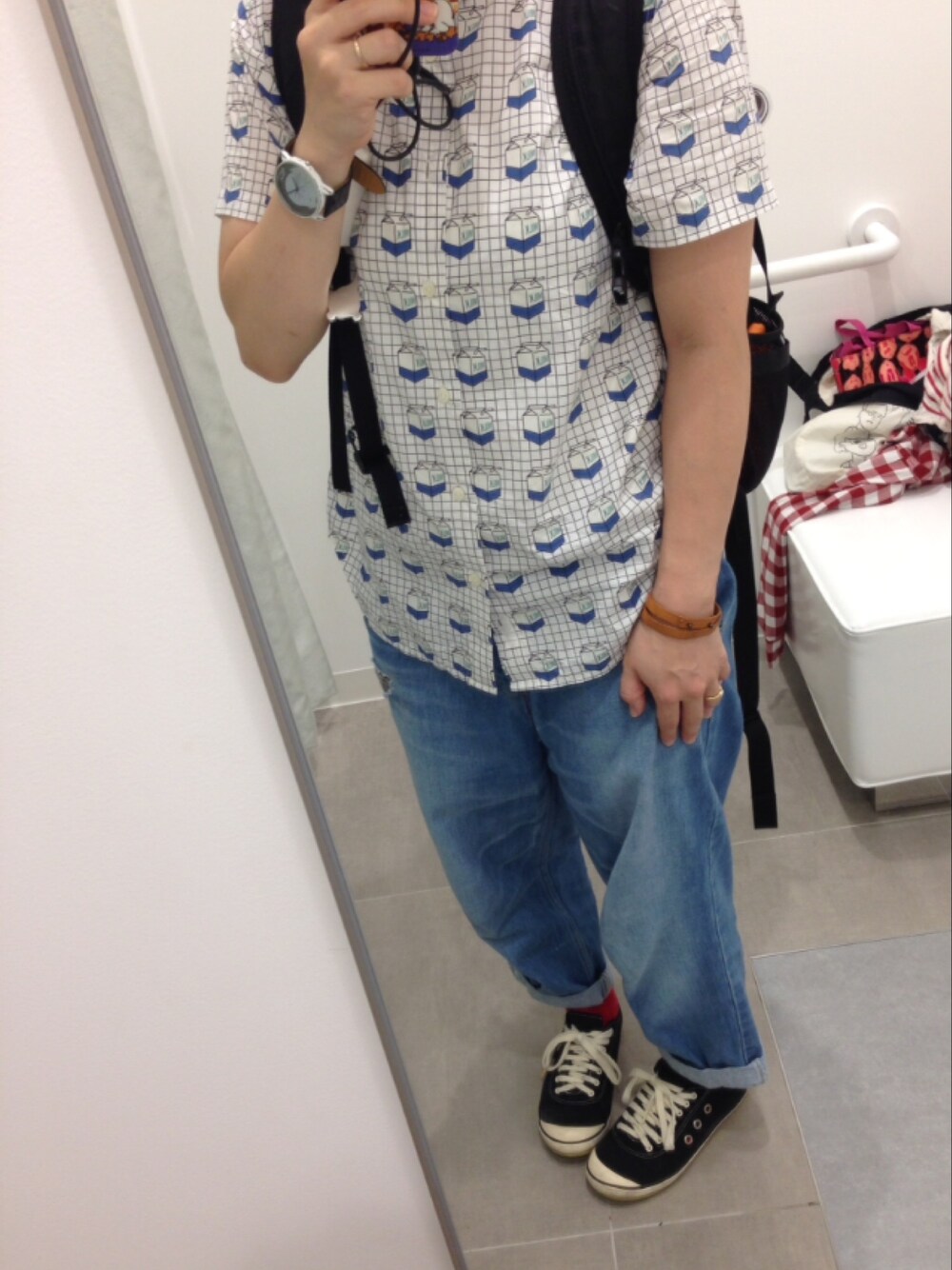 初投稿は大好きな I am I 。 ミルクシリーズが好き過ぎて、シャツ、パンツ、エプロンスカートを持っています。柄物だけど意外と着回しもきくし、良い感じですな〜♪(´ε` ) Unlimited tone(アンリミ)というのはブランドじゃなくてアーティスト名です。とっても素敵な方々ですので、機会があればぜひ。♬