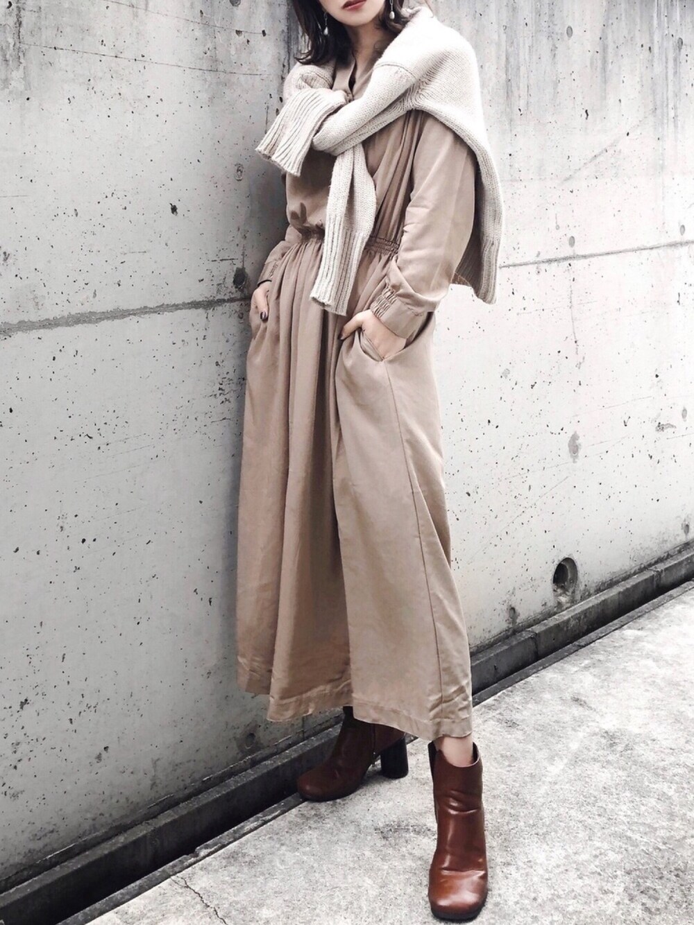 KASUMIのワンピース「くるみ釦ウエストギャザーワンピース」を使ったコーディネート