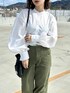 KASUMIのシャツ/ブラウス「バルーン袖スタンドカラーブラウス」を使ったコーディネート