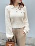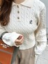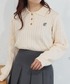 KASUMIのニット/セーター「【選べる2デザイン】ケーブルニットポロプルオーバー」を使ったコーディネート