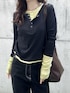 KASUMIのTシャツ/カットソー「【web限定アイテム】配色シアー×ヘンリーネックレイヤードロンT」を使ったコーディネート