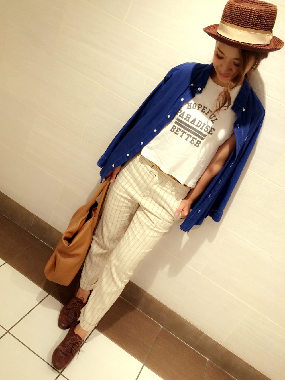 出勤code. ラルフローレンのSHはvintage. men'sものです。 鮮やかなブルーが素敵で ひとめぼれしたシャツ♡ 白ステッチも 自分だけのこだわりpoint(^^)