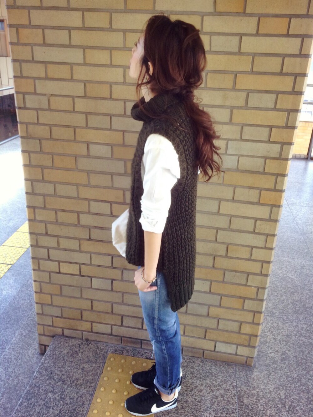 シャツ+ノースリニットのstyle. このシャツはスタンドカラーで モタつかないので重ねやすい♡ 今期トレンドの着こなし! 雑誌でも街でもよく見かけますね☺︎ hairはくるりんぱしただけの 簡単アレンジです* Instagram→@ka_lly フォローして頂けたら嬉しいです♡