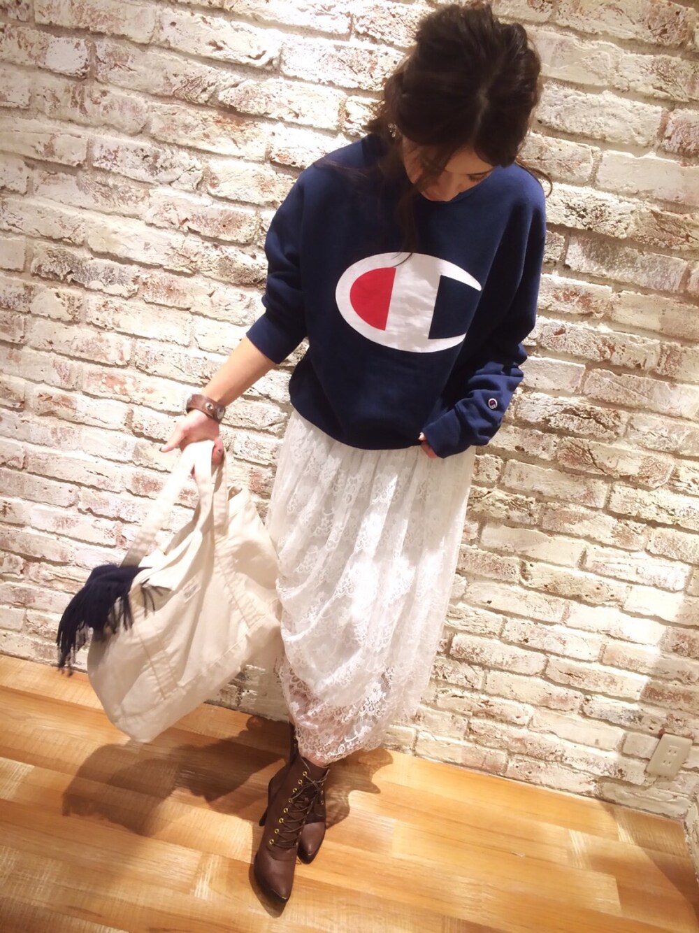 KASUMIのスウェット「【Casual】Champion Bigロゴスウェット」を使ったコーディネート